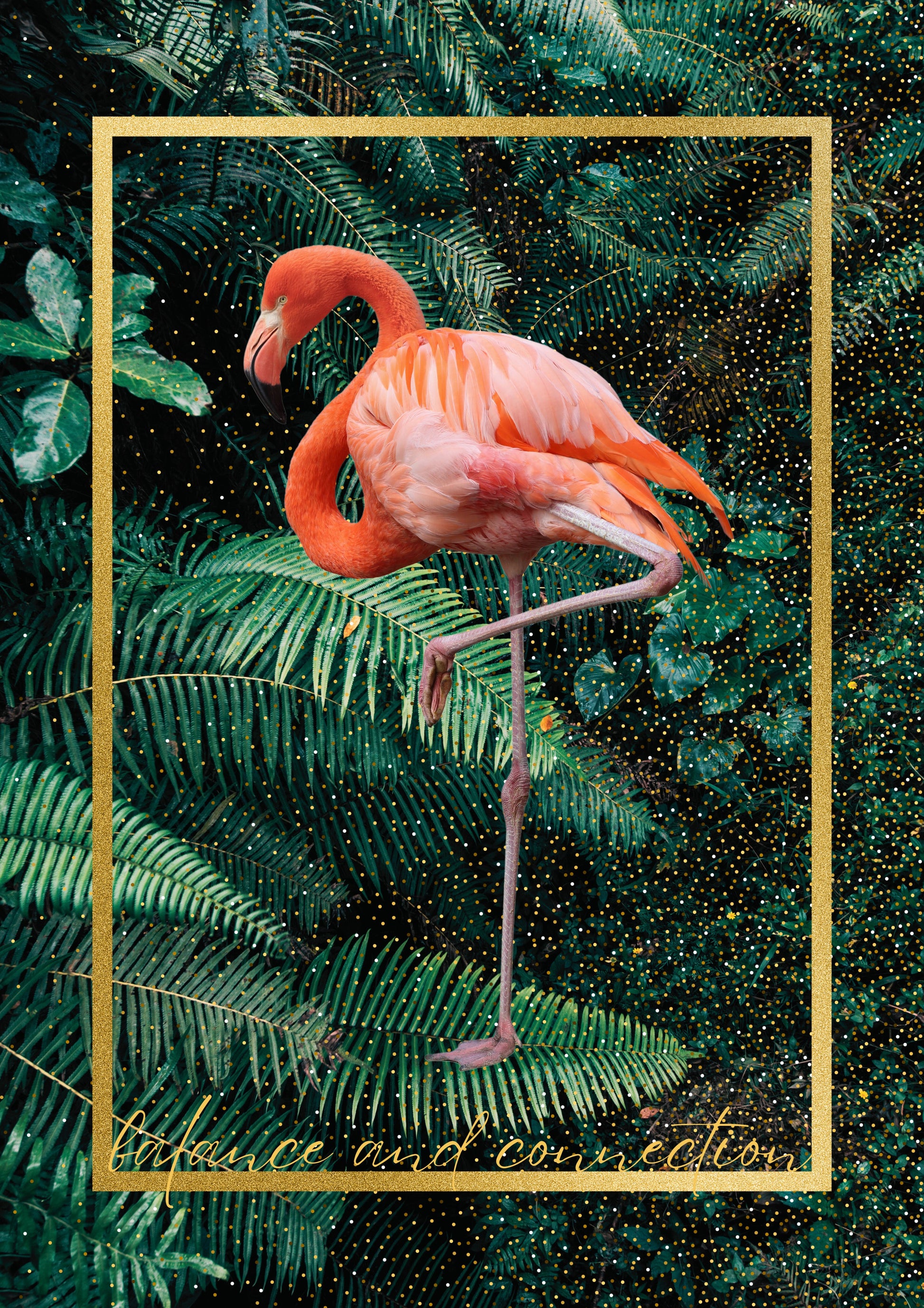 In the lush realms of our inner landscapes, the Flamingo emerges, a symbol of balance and connection. Standing on one leg amidst a jungle of green, it teaches the art of stability within life’s constant flux. This piece beckons you to find harmony in relationships and environments, suggesting that true equilibrium comes from acknowledging the interconnectedness of all things.