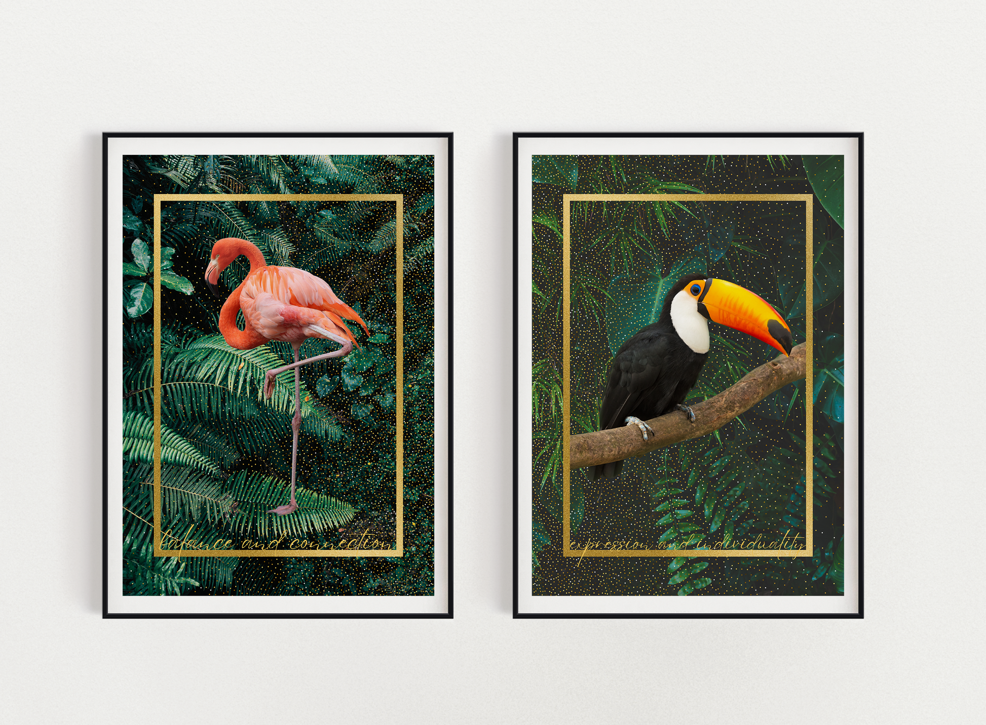 In contrast, the Toucan card speaks to expression and individuality. Perched boldly, its vibrant beak a beacon in the shadowed foliage, it calls you to embrace your unique voice and visible distinctiveness. This piece encourages you to stand out, to use your personal power to influence and inspire those around you.