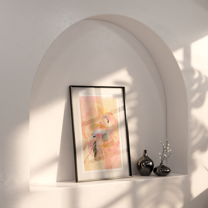 The Flamingo Queen inspires you to stand firm in your values, much like it stands poised on one leg, yet flexible to the ebb and flow of life’s waters. It speaks of the beauty in vulnerability and the strength in being vividly oneself.